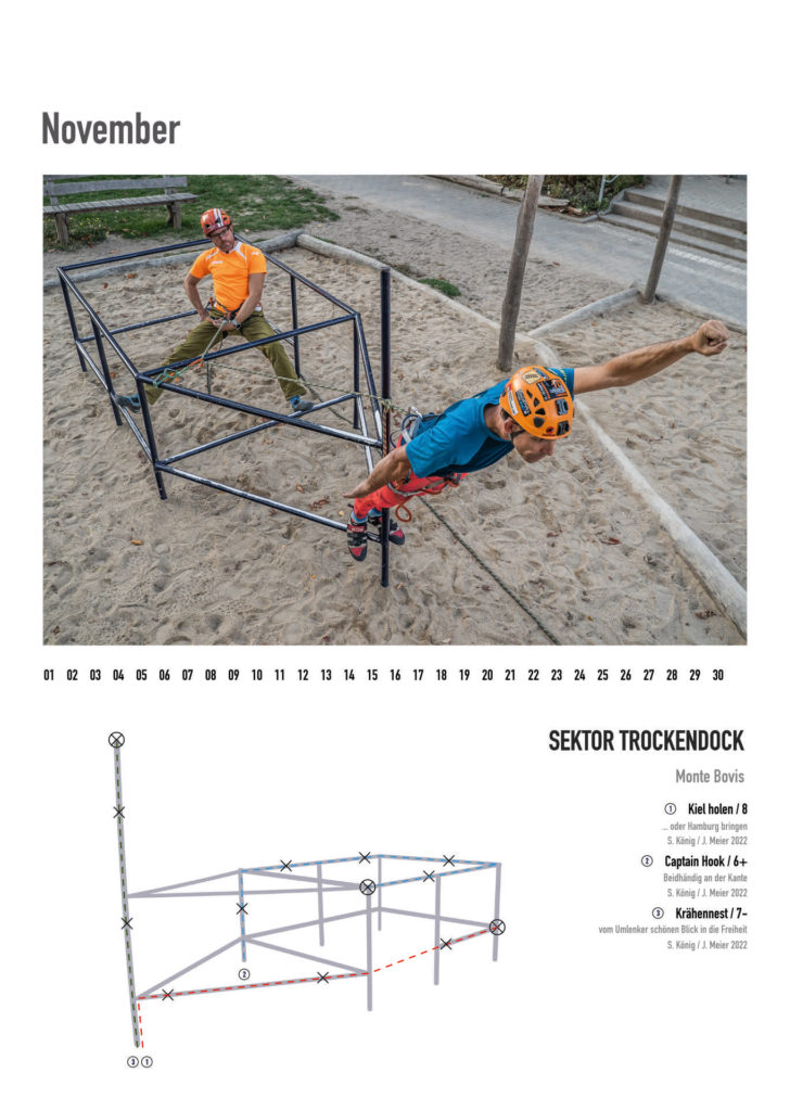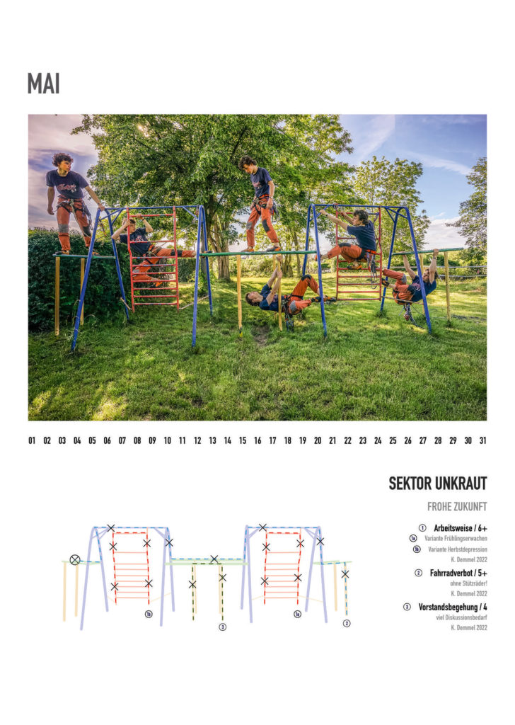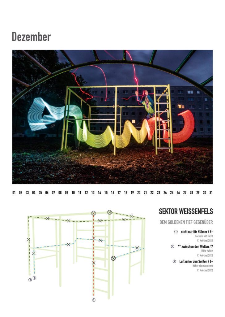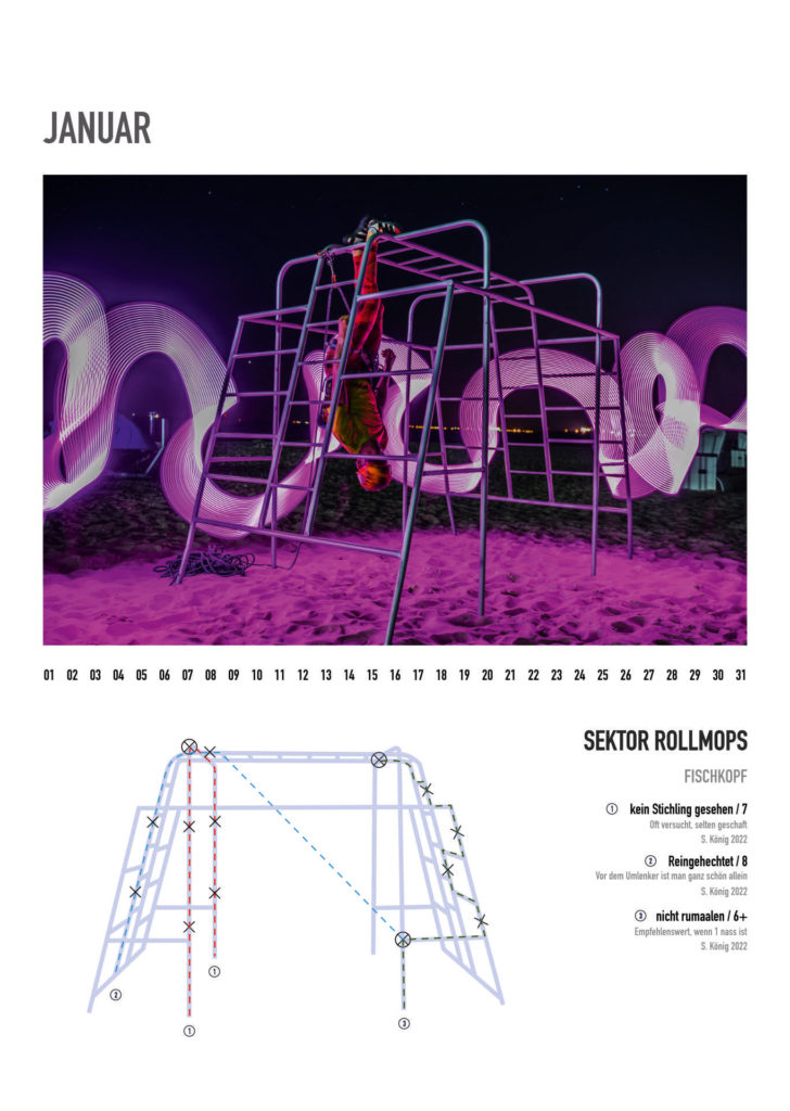 Wieder waren wir unterwegs, um die Vielfalt der alten Stahlrohr-Klettergerüste zu zeigen. Und wieder haben wir tolle Gerüste gefunden und geklettert. Dabei ist dieser schöne Kalender entstanden. Den wird es dann im Dezember, zum Weihnachtsplätzchen am „hr.fleischer“ Kiosk am Reileck, zu kaufen geben.